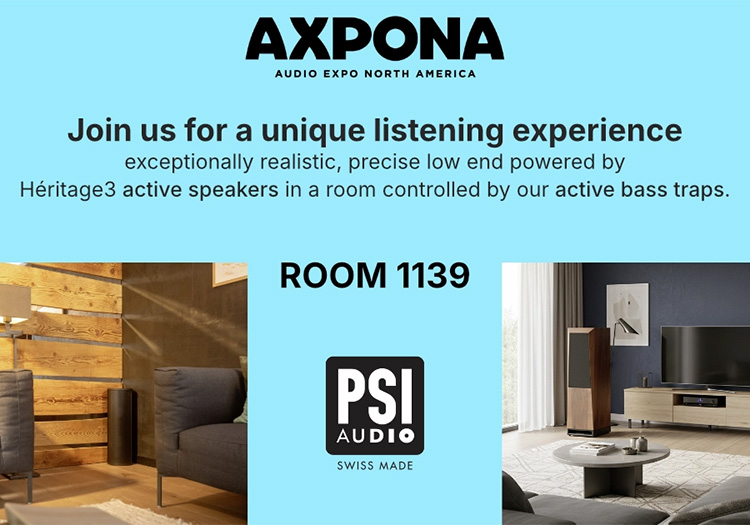 PSI Audioは、イリノイ州シカゴのシャンバーグ・コンベンションセンター1139号室にて2026年4月10日~12日まで開催されるAXPONA 2026に出展します。ハイエンドフロアスタンディングスピーカーシステム「Héritage3」、卓越したブックシェルフスピーカー「A17-M」、そして革新的なアクティブベーストラップ「AVAA C214」を展示します。